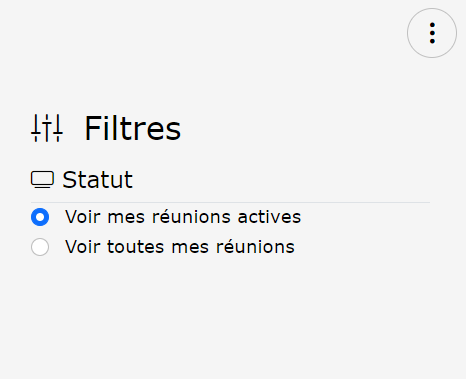 :bulb: Dans le bloc latéral de droite, vous avez la possibilité d'afficher uniquement les **réunions actives** ou l'**historique complet** de vos réunions.
